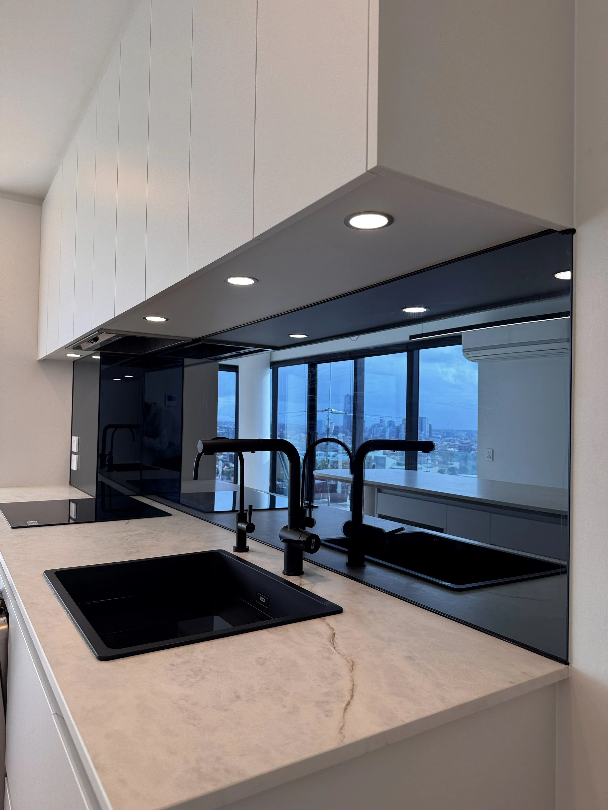 From toughened mirror to painted glass and custom digital prints — splashbacks made to suit every application